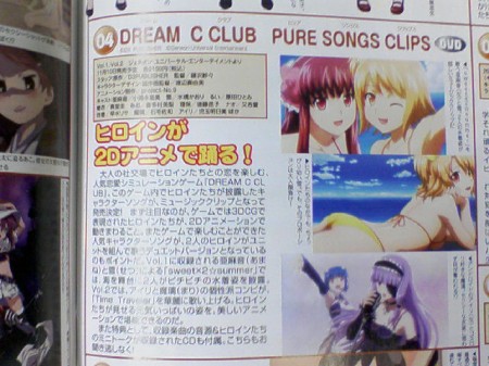 The smash hit Xbox 360 dating simulation game Dream C Club is being merchandized into a pair of anime music video collections. Two Dream C Club Pure Songs Clips DVD & CD sets will go on sale November 10. The first DVD will contain original anime music videos starring Dream C Club characters Amane and Setsu. The second volume will feature characters Airi and Mari.