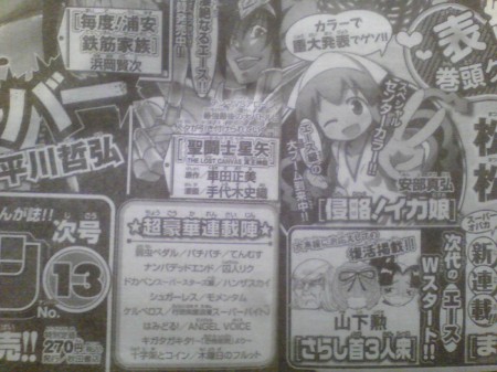 Apparantly the upcoming issue of Shounen Champion magazine promises a full color “big announcement” revolving around the Shinryaku! Ika Musume franchise.
