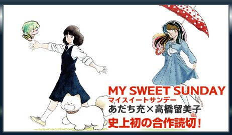Celebrated manga artists Rumiko Takahashi & Mitsuru Adachi’s collaborative one-shot manga short story “My Sweet Sunday” is now available online, in untranslated Japanese language, until May 24. The manga story was created to commemorate the 50th anniversary of Weekly Shonen Sunday magazine.