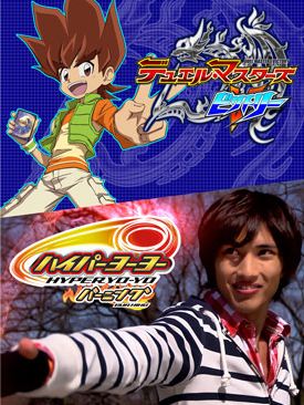The TV Tokyo network has announced that the eighth Duel Masters anime television series, Duel Masters Victory, will premiere tomorrow at 8:30am. The show’s (presumably) fifteen-minute long episodes will share the “Oha Koro-su” (presumably a pun on “cross” and “Koro Koro,” the magazine that publishes the Duel Masters manga) timeslot with episodes of the new live-action Hyper Yo-Yo Burning television series, which is based on Bandai’s line of Hyper Yo-Yo toys.