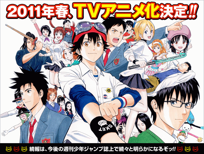 A super-deformed Flash anime adaptation of Kenta Shinohara’s school comedy manga Sket Dance will premiere on the franchise’s official homepage next week. A Sket Dance television anime series is scheduled to premiere on April 7. The Sket Dance story revolves around two boys and a girl who form their high school’s maligned “campus support group” that solves student body problems.