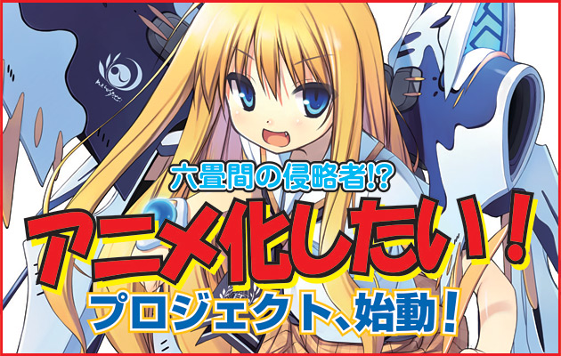 Last March Japanese publisher Hobby Japan released an original English language anime trailer for author Takehaya’s light novel series Rokujoma no Shinryakusha!? that suggested an anime was in the works. Hobby Japan has updated with a new trailer – this one in Japanese with less, but different, anime footage – again trying to generate interest in a formal anime adaptation. The trailer advertises a mail-away promotional DVD as part of a “We Want to Adapt Rokujoma no Shinryakusha!? Into Anime!” campaign.