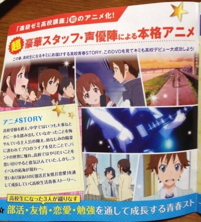 The Benesse Corporation’s Shinken Zemi Koko Koza correspondence course designed to assist middle school students achieve enrollment in their high school of choice has announced its own promotional anime from studio Manglobe (Ergo Proxy, Deadman Wonderland). Voice actors Aya Hirano, Miyu Irino, and Kisho Taniyama will star in the full-length OVA. The DVD will be distributed exclusively through the Shinken Zemi Koko Koza service.