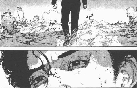 While the final volume brings together all of its remaining characters and plot threads, much of the final book exists as a showcase for Boichi’s phenomenal graphic art. Much of the book literally depicts the occurrence of the end of the world that loomed throughout the story. Multiple giant panels and splash pages illustrate cataclysmic global destruction on a scale that’s breathtaking for both its scope and its visual detail. Reminiscent of amazingly detailed depictions of collateral damage in Katsuhiro Otomo’s classic Akira manga, Boichi draws awesome depictions of catastrophic destruction with amazing attention to detail. The spectacular visual art in volume 5 alone justifies recommending the book. Like previous volumes, the concluding book includes a few panels of graphic, non-sexual nudity and gruesome visceral gore. One Peace Book’s presentation of volume 5 has crisp, clean printing with solid monochrome reproduction and a natural English translation free of typos and errors.